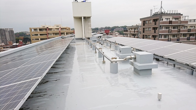 屋上に太陽光パネルを設置しており、共用灯などの電源に利用しています