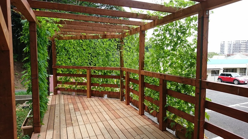 こうのすやまひろば・ウッドデッキに作ったゴーヤのカーテンが、家庭部門(集合住宅の部)「最優秀賞」を受賞しました