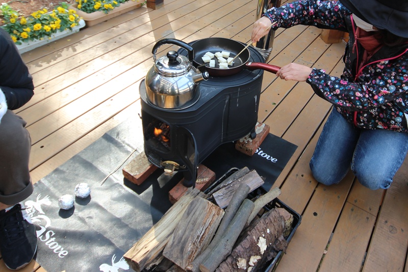 重い荷物を置いたり、ちょっと休憩できるためのお休み処を作りました