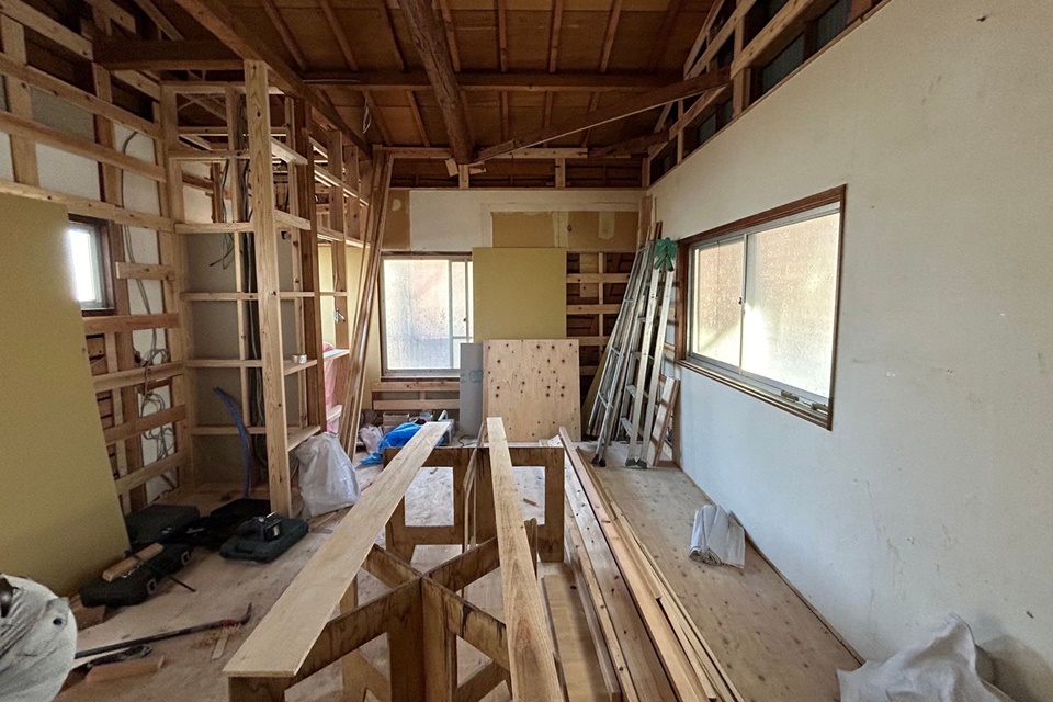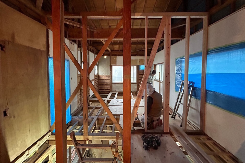 次に、解体した室内に改めて床や間仕切り壁などの下地を組んでいきます。