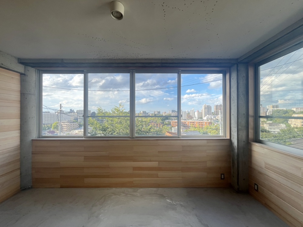 工事しているのはNE-2号室。壁2面にある窓からの景色がとても魅力的なお部屋です。以前は大濠公園の花火がきれいに見えていました。
