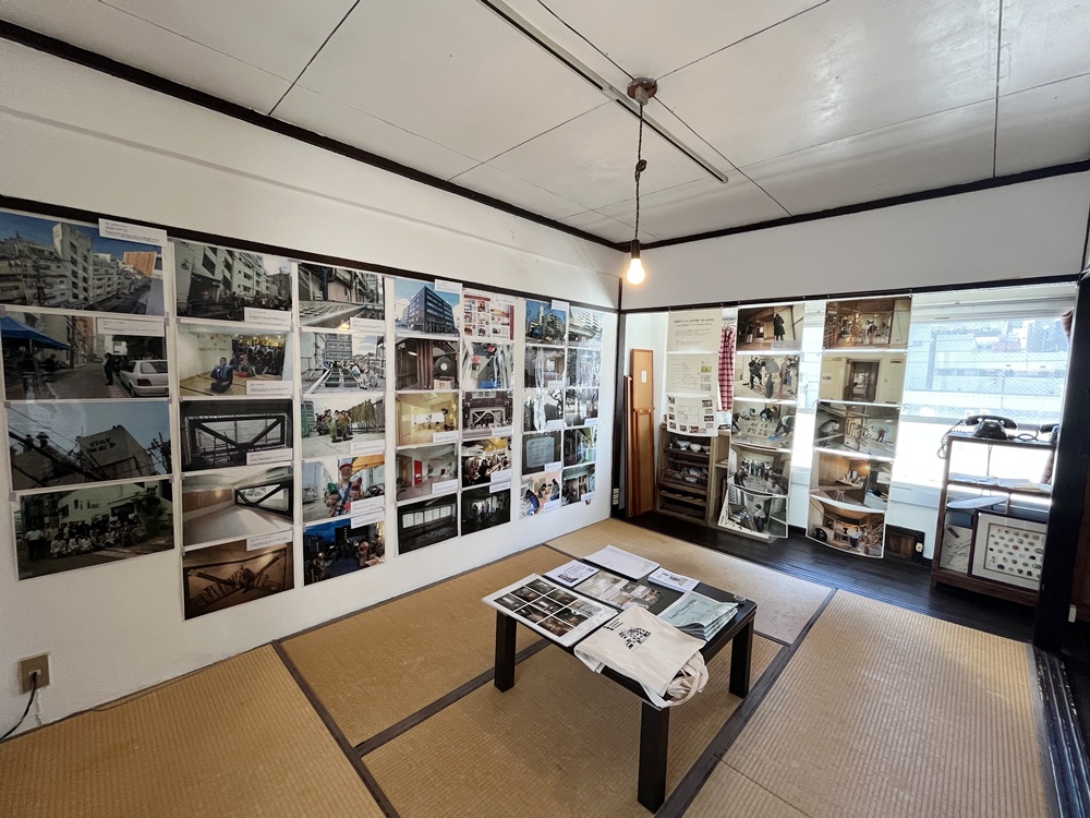 スペースRデザインでは管理人室と当初部屋にて、吉原住宅と協働で運営している4つの築古ビルの「あゆみと今」を紹介する展示を行いました。