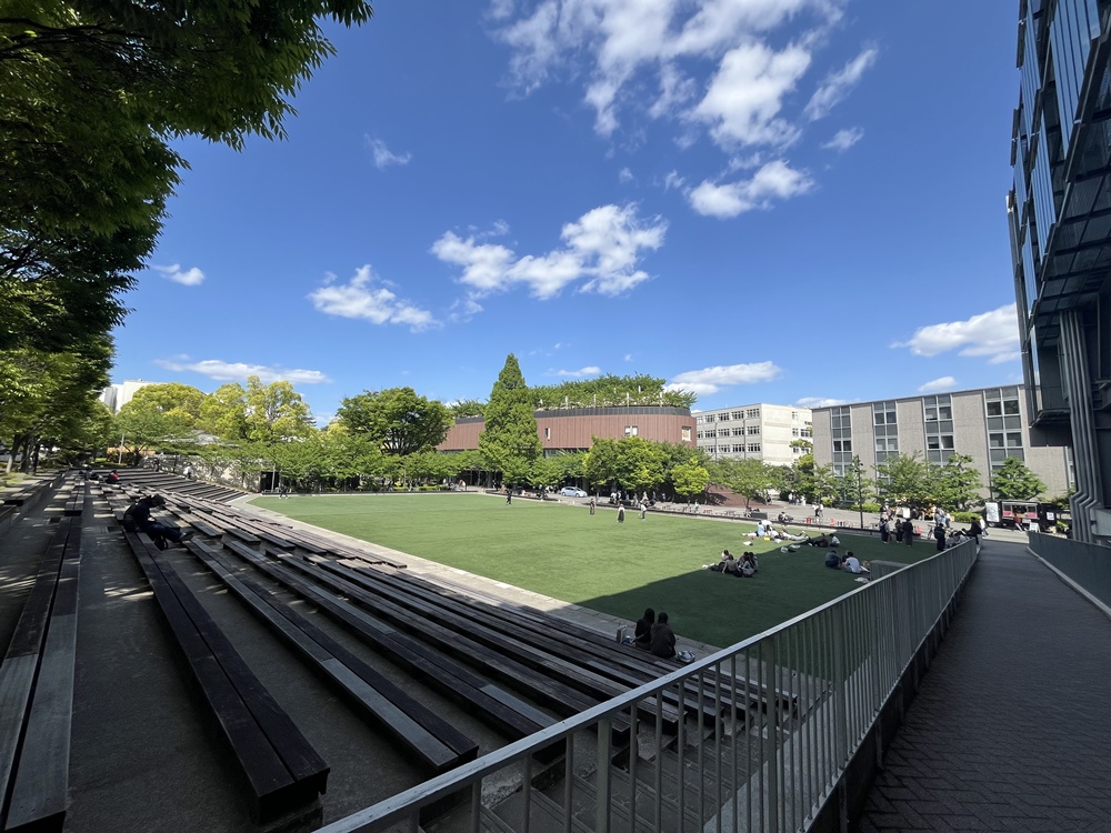千里山キャンパスは緑豊かな環境で、敷地内を歩くのが心地良い。高低差を利用した各建物へのアプローチが自然でおもしろい造りでした。(キャンパス内を歩くおすすめコースが紹介されていました。こんな目線で自分達のまちを紹介するのもすてきです。)