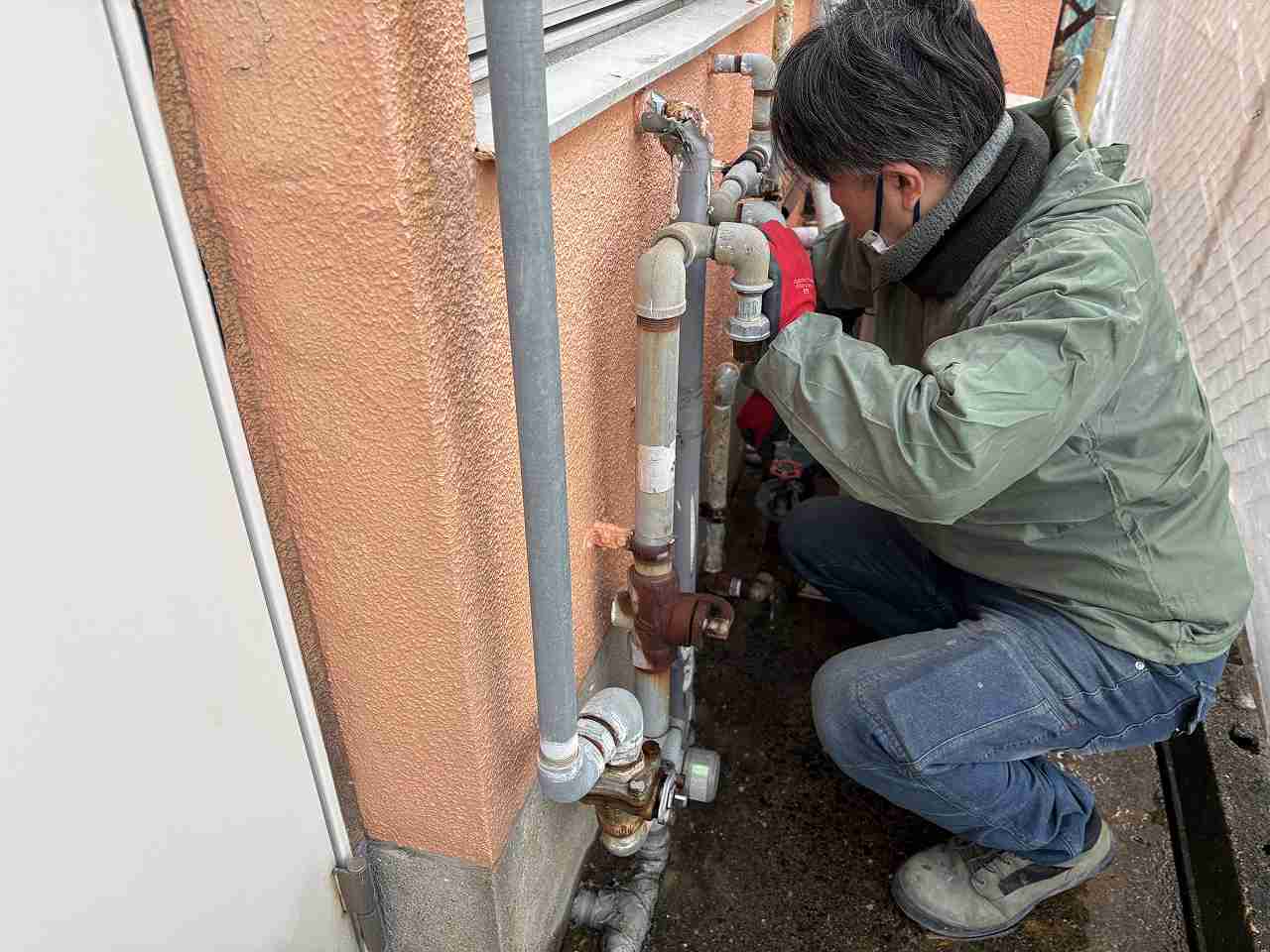 古い管を撤去して新しい管に切り替える際、全部屋の断水が必要になります。