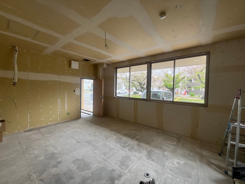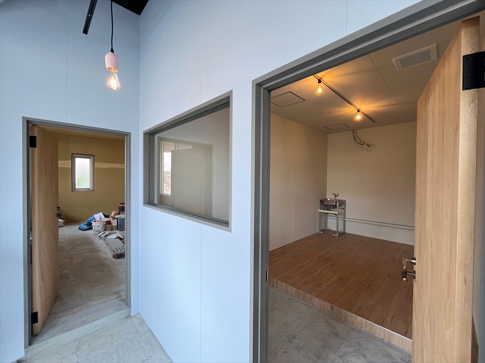 スモールオフィスやサロン用途を想定した区画は内装仕上げ工事まで行い、店舗を想定した区画は下地状態でのお引渡しとしました。