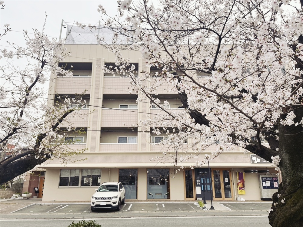 建物の目の前の桜並木を臨む、心地よい路面区画。西鉄の新駅「桜並木駅」開業(2024年3月)と同時に、グレースガーデンの1階もお披露目。建物1階をまちにひらく、新しいあゆみのスタートとなりました。