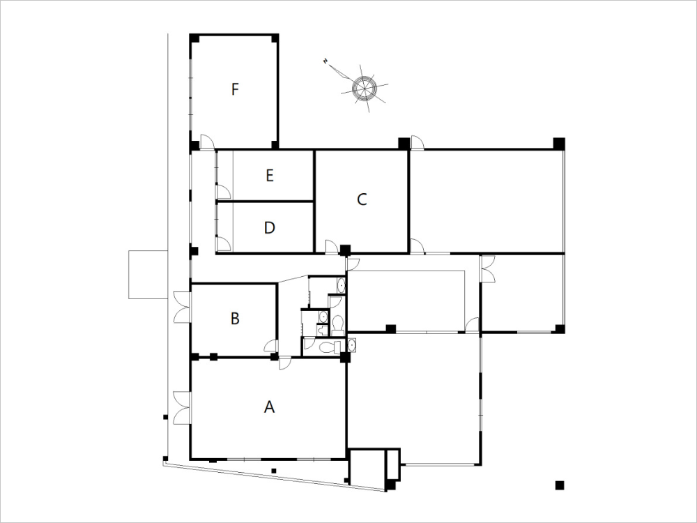 もともと1つのテナントがワンフロア利用していた約85坪の1階スペースを、区割りして複数のテナント区画にしたいとオーナーよりお声がけをいただき、プロジェクトがスタート。市場調査等の結果、オフィス・店舗の複合用途テナントスペース(6区画)へリノベーションすることになりました。